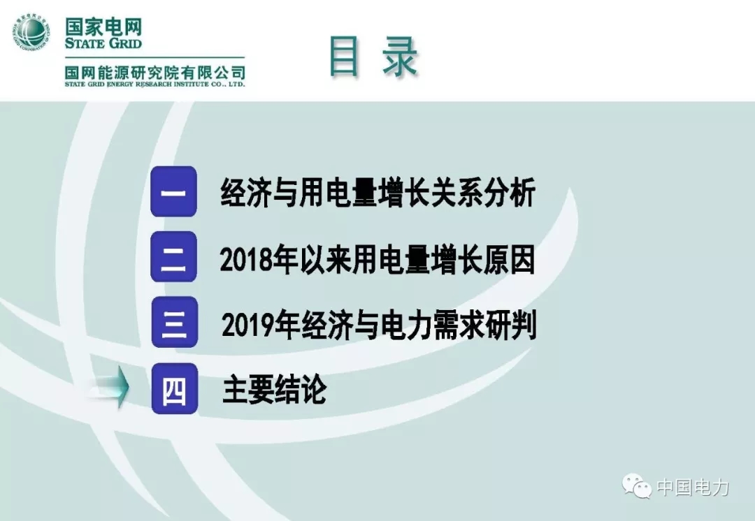 報(bào)告主要分4個(gè)部分:1.經(jīng)濟(jì)與用電量增長(zhǎng)關(guān)系分析;2.2018年以來(lái)用電量增長(zhǎng)原因;3.2019年經(jīng)濟(jì)與電力需求研判;4.主要結(jié)論。