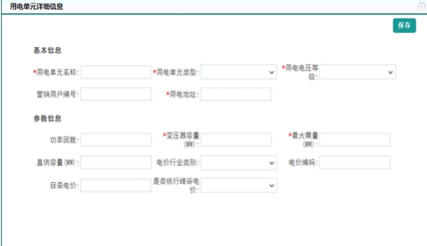 填寫用電單元信息后,點(diǎn)擊保存完成此用電單元的注冊(cè)。