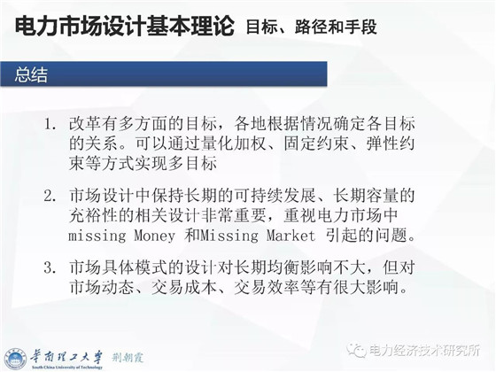 日前,荊朝霞教授分享了題為《電力市場改革的目標、路徑與手段》PPT,從電力市場改革的總體目標、長期可持續(xù)發(fā)展目標討論、實現(xiàn)目標的路徑
