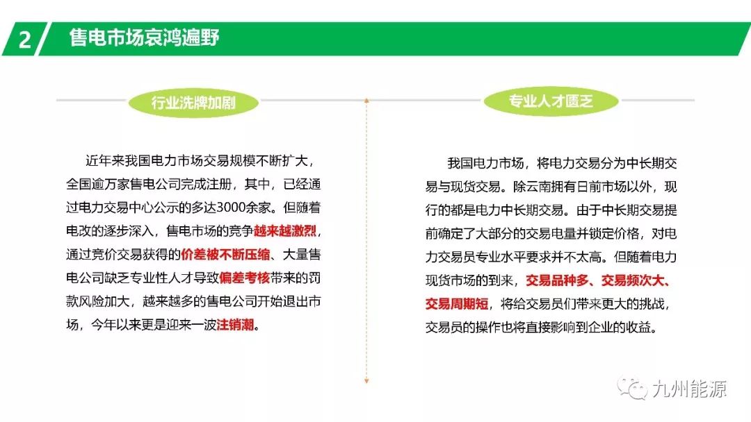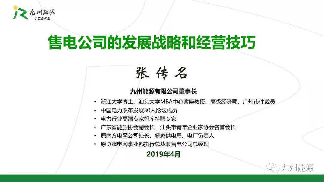 4月11日,九州能源公司董事長(zhǎng)張傳名應(yīng)邀在中國(guó)投資協(xié)會(huì)培訓(xùn)中心作了《售電公司的發(fā)展戰(zhàn)略和經(jīng)營(yíng)技巧》主題演講。張傳名認(rèn)為,售電公司要正確理解本輪電改的意義和社會(huì)價(jià)值,堅(jiān)定信心,在“做大做強(qiáng)、做好加減”上下功夫,久久為功,逐夢(mèng)未來(lái)。