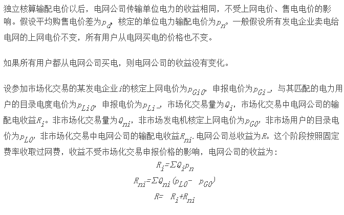 分析核算獨(dú)立的輸配電價(jià)格,市場(chǎng)化交易外的電力仍然按照節(jié)能發(fā)電調(diào)度規(guī)則安排的情況。
