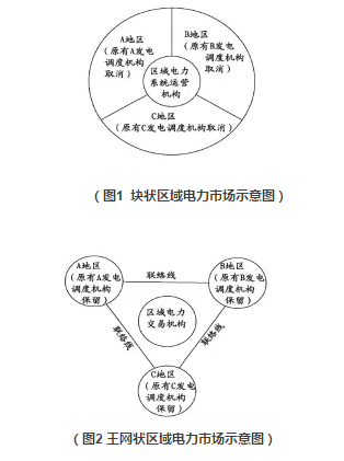 四是區(qū)域電力市場(chǎng)不會(huì)與行政區(qū)市場(chǎng)構(gòu)成多級(jí)市場(chǎng)。電力市場(chǎng)實(shí)質(zhì)上不分級(jí)別,不同電力市場(chǎng)從地理范圍上“拼圖式”設(shè)置,同一時(shí)間不會(huì)出現(xiàn)重疊的層級(jí)設(shè)置,即同一地理區(qū)域范圍內(nèi)區(qū)域電力市場(chǎng)與行政區(qū)市場(chǎng)不會(huì)同時(shí)存在。如同,購(gòu)買(mǎi)一種日常用品,消費(fèi)者選擇連鎖社區(qū)超市、大型商場(chǎng)和網(wǎng)店的理由僅僅是出于對(duì)綜合價(jià)格的考慮,而不會(huì)因?yàn)槿叩?ldquo;行政級(jí)別”進(jìn)行選擇,當(dāng)然三者也沒(méi)有任何級(jí)別差異,都是購(gòu)買(mǎi)商品的場(chǎng)所而已。區(qū)域電力市場(chǎng)在國(guó)際范圍內(nèi)分為“塊狀區(qū)域市場(chǎng)”和“網(wǎng)狀區(qū)域市場(chǎng)”(見(jiàn)圖1),塊狀區(qū)域市場(chǎng)指各地區(qū)均將地區(qū)電力調(diào)度機(jī)構(gòu)原有發(fā)電計(jì)劃?rùn)?quán)移交至統(tǒng)一的電力系統(tǒng)運(yùn)營(yíng)機(jī)構(gòu)(如ISO),塊狀區(qū)域電力系統(tǒng)成為一個(gè)統(tǒng)一運(yùn)行的區(qū)域市場(chǎng),北美區(qū)域電力市場(chǎng)多采用這種方式;網(wǎng)狀區(qū)域市場(chǎng)指各地區(qū)在共同認(rèn)可區(qū)域交易機(jī)構(gòu)(不組建區(qū)域調(diào)度機(jī)構(gòu))形成發(fā)電計(jì)劃,以及地區(qū)間的聯(lián)絡(luò)線送計(jì)劃,由各地區(qū)原有電力調(diào)度機(jī)構(gòu)組織執(zhí)行,聯(lián)絡(luò)線送受電計(jì)劃由相關(guān)地區(qū)電力調(diào)度機(jī)構(gòu)按事先協(xié)議進(jìn)行調(diào)度執(zhí)行的區(qū)域市場(chǎng)(見(jiàn)圖2),為人所熟知的北歐電力市場(chǎng)就屬于這種區(qū)域市場(chǎng),籌建中的歐洲統(tǒng)一電力市場(chǎng)也是這種網(wǎng)狀區(qū)域市場(chǎng)。
