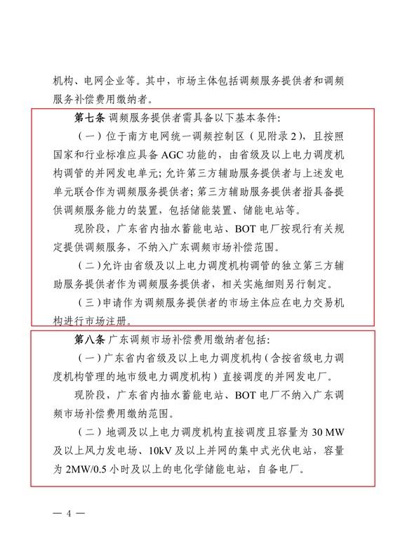 規(guī)則中指出第三方輔助服務(wù)提供者指具備提供調(diào)頻服務(wù)能力的裝置,包括儲能裝置、儲能電站等;容量為2MW/0.5小時及以上的電化學儲能電站是廣東調(diào)頻市場補償費用繳納者之一。