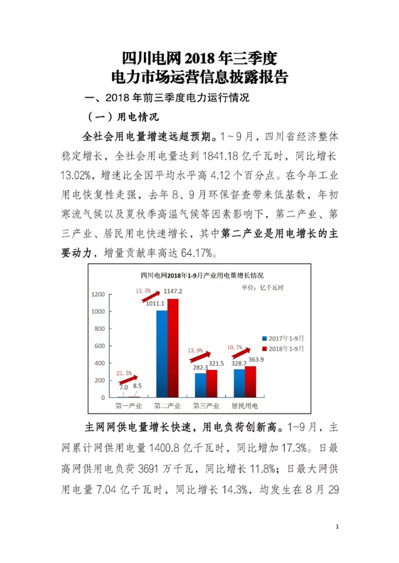 信息披露 | 四川2018年三季度電力生產(chǎn)及市場(chǎng)運(yùn)營信息披露報(bào)告