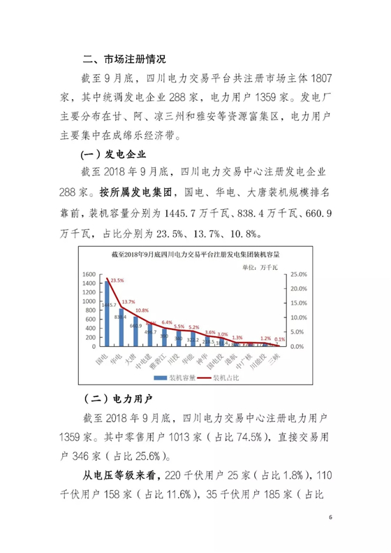 市場(chǎng)注冊(cè)情況:截止9月底四川電力交易平臺(tái)共注冊(cè)市場(chǎng)主體1807家,其中統(tǒng)調(diào)發(fā)電企業(yè)288家,電力用戶1359家。