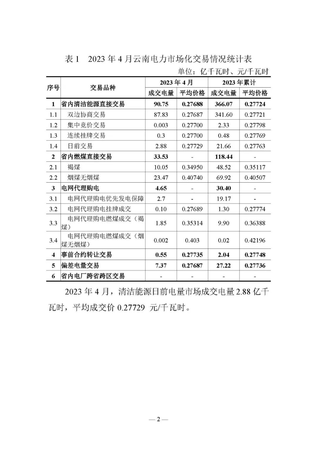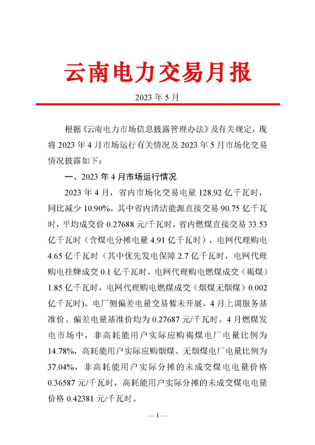 昆明電力交易中心:云南電力交易月報(bào)(2023年5月)