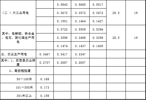 (2)除農(nóng)業(yè)生產(chǎn)(含貧困縣農(nóng)業(yè)排灌,下同)用電價(jià)格外,均含水庫(kù)移民后期扶持資金每千瓦時(shí)0.14分。