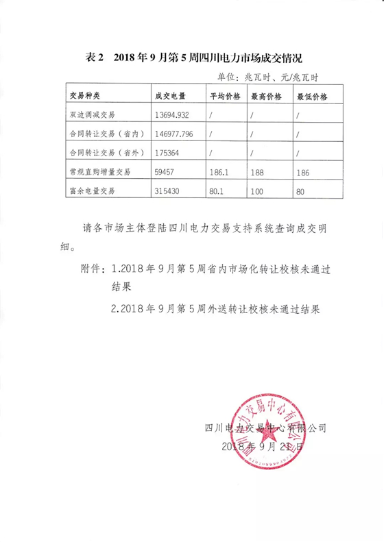 四川2018年9月第5周周交易結(jié)果