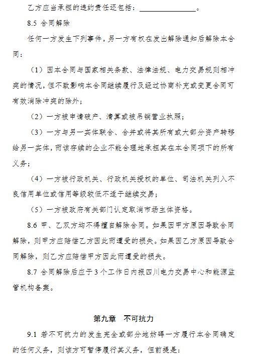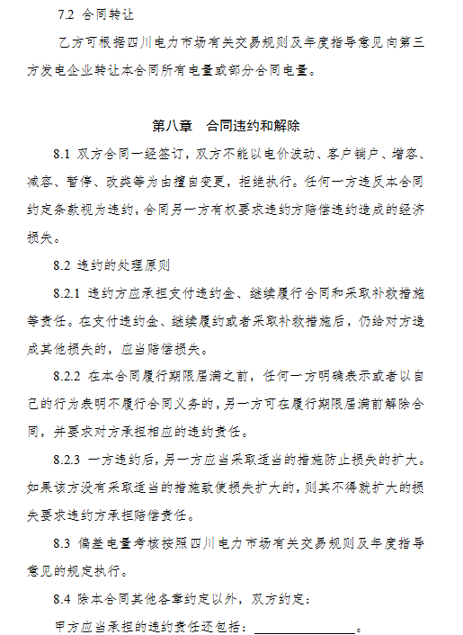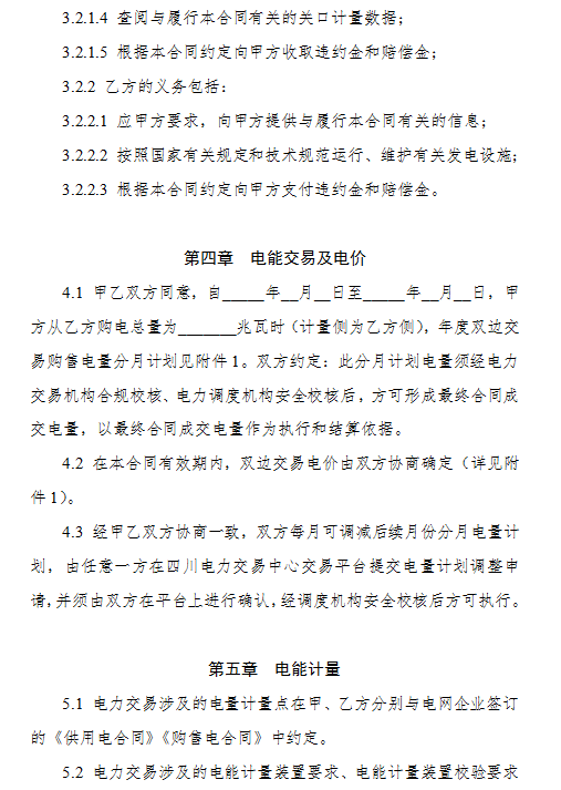 4.《四川省電力用戶與發(fā)電企業(yè)年度雙邊交易購售電合同(示范文本)》