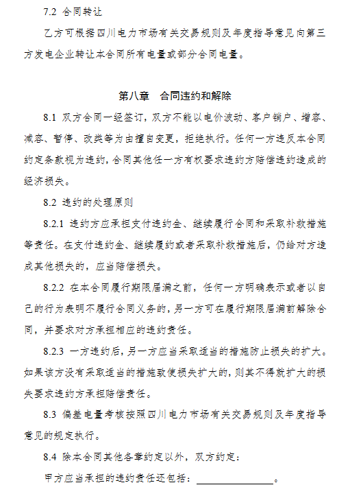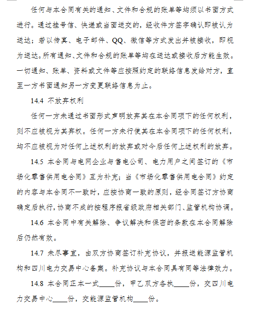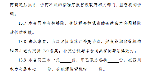 3.《四川省售電公司與電力用戶購售電合同(示范文本)》