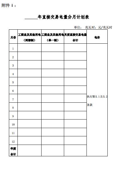 第四條 市場主體通過自主協(xié)商確定雙邊交易的電量和電價,簽訂雙邊交易意向書(參考文本見附件 1),并明確分月電量,各月價格保持一致。