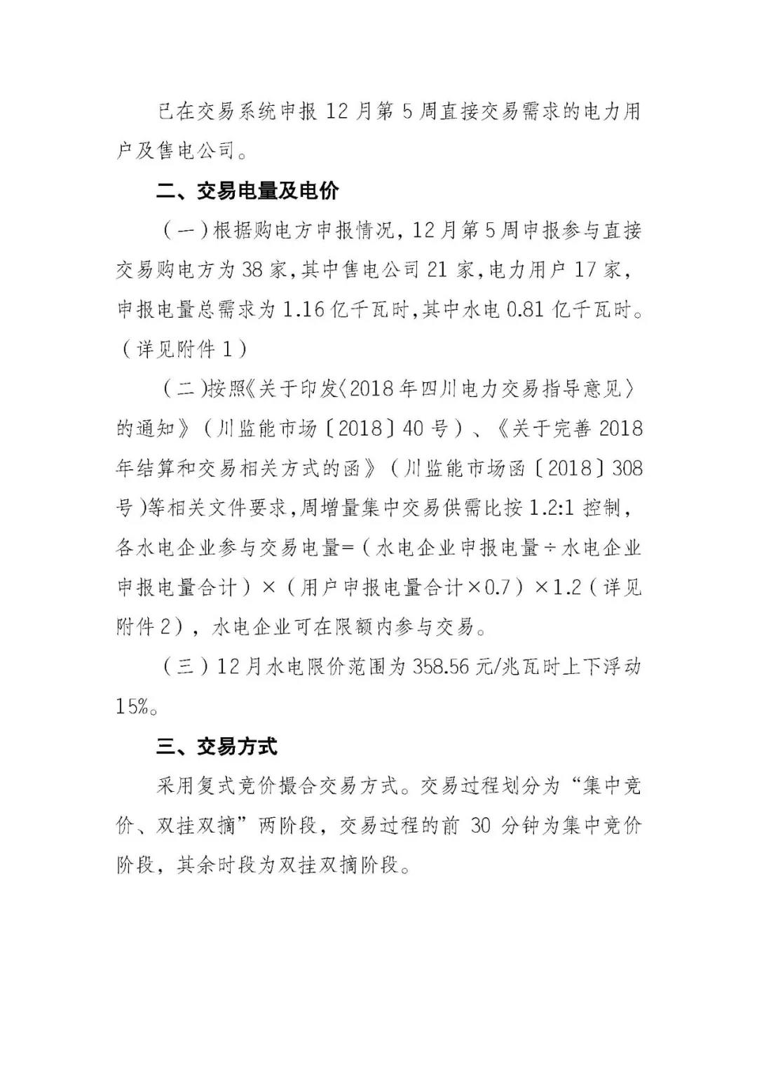 公告 | 四川電力交易中心關(guān)于開展2018年12月第5周直接交易的公告
