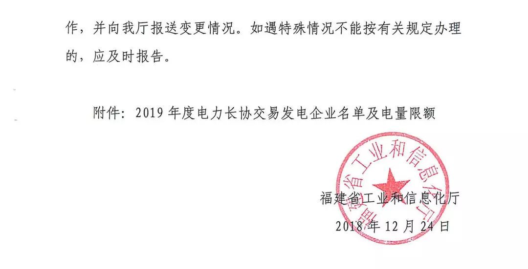 福建省工信廳發(fā)布了《關(guān)于明確2019年電力市場交易有關(guān)事項的函》
