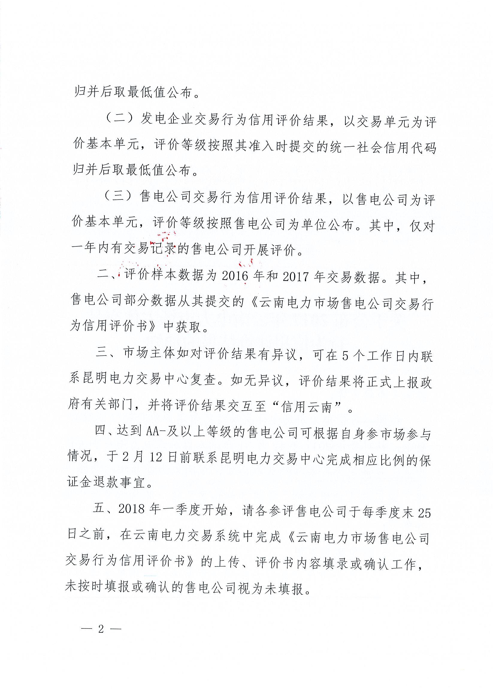 達(dá)到AA-及以上等級(jí)的售電公司可根據(jù)自身參與市場(chǎng)參與司,于2月12日前聯(lián)系昆明電力交易中心完成相應(yīng)比例的保證金退款事宜。