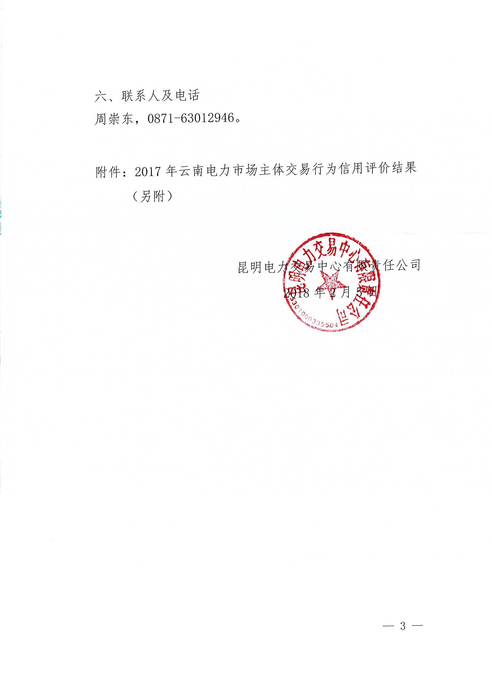 2017 年云南電力市場(chǎng)主體交易行為信用評(píng)價(jià)結(jié)果