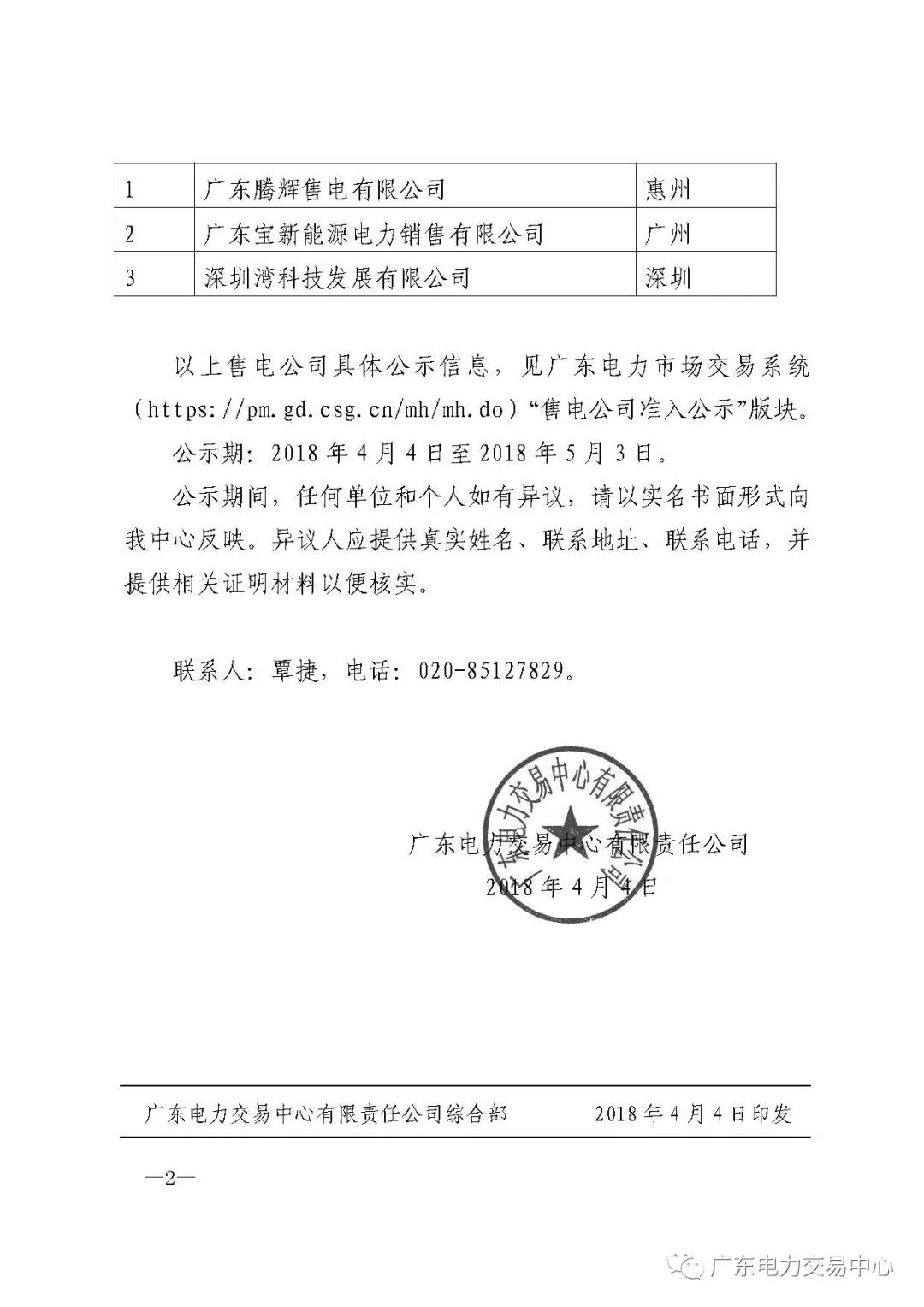 為做好售電公司的準(zhǔn)入審核等相關(guān)工作,廣東電力交易中心現(xiàn)對(duì)2018年03月注冊(cè)申請(qǐng)的3家售電公司進(jìn)行公示,公示正文如下:
