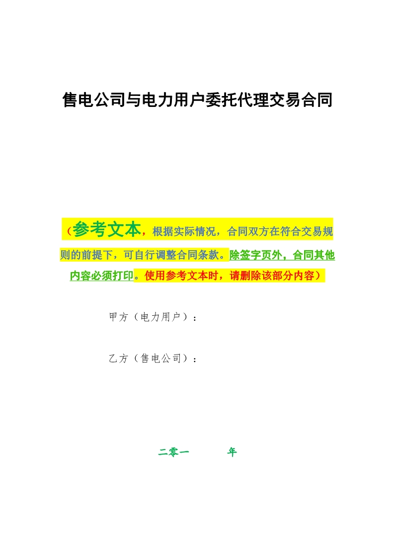 河南2018年售電公司與電力用戶委托代理交易合同模板(最新版)