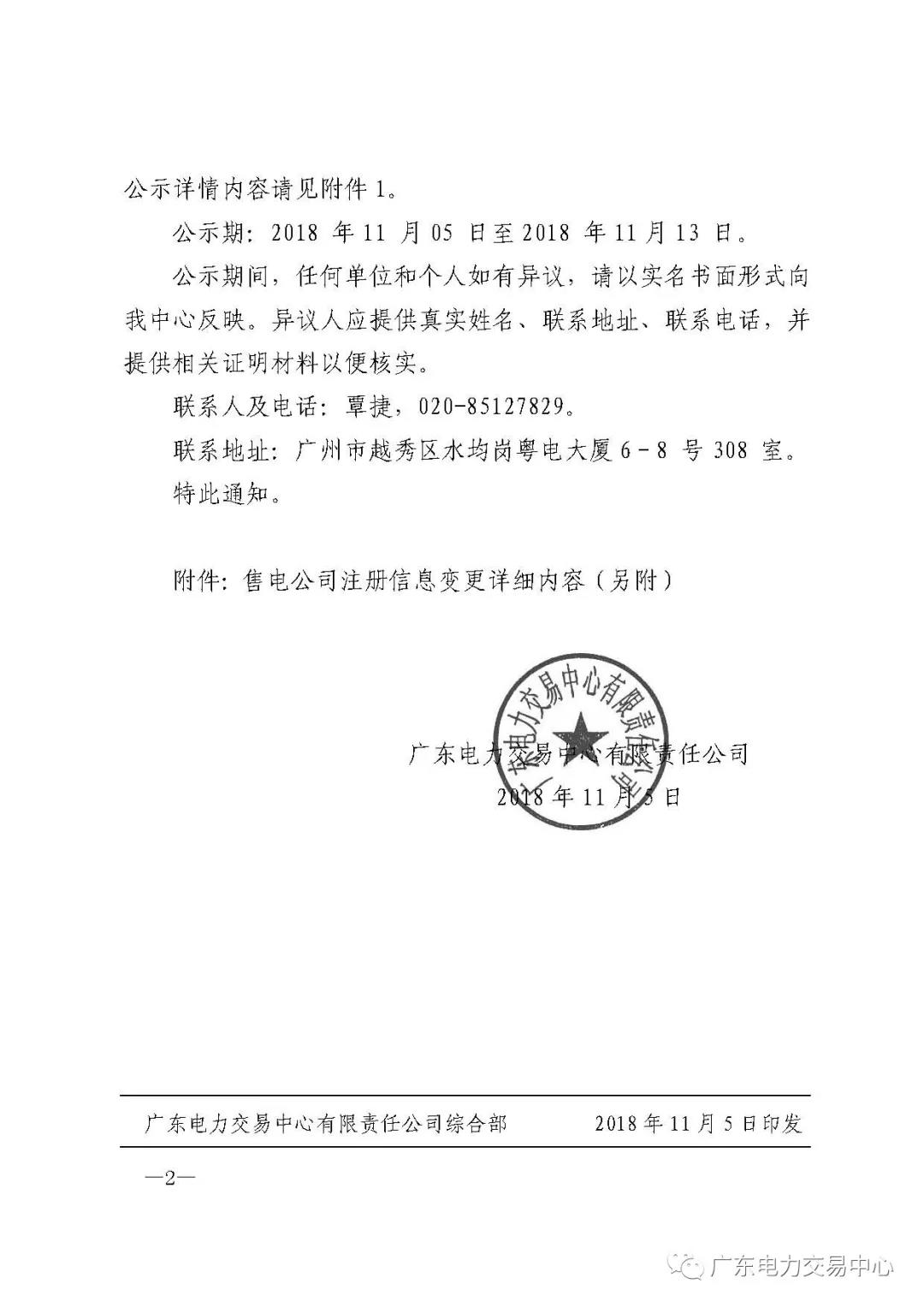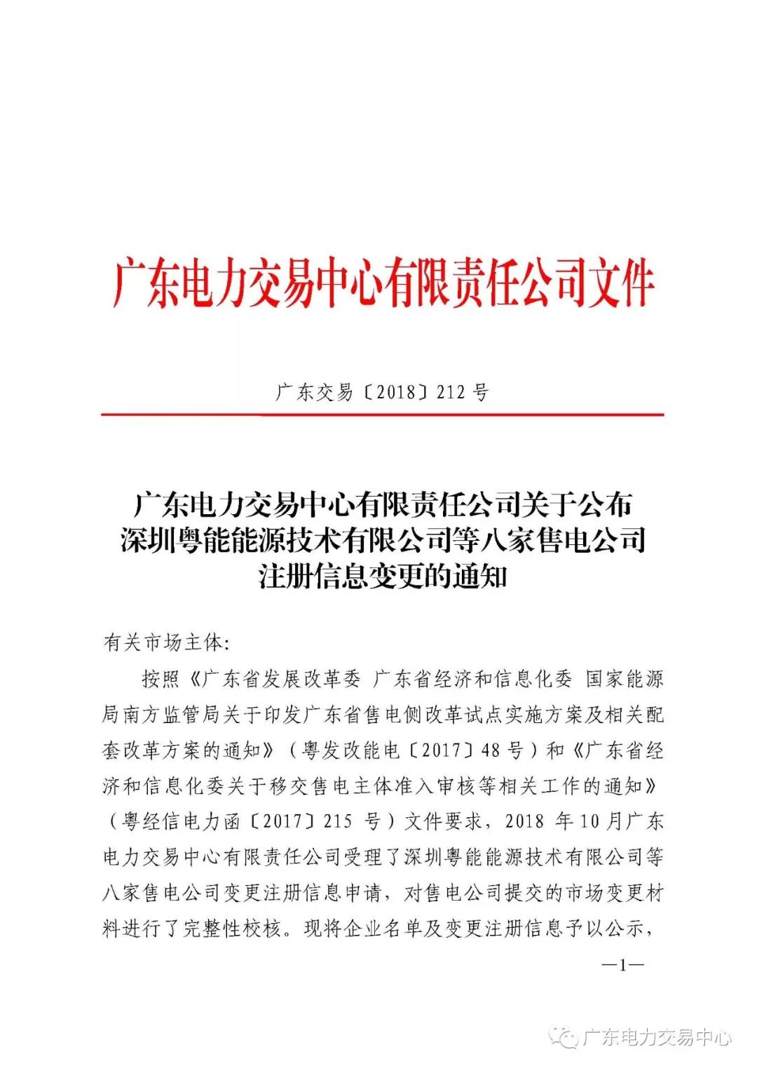 通知 | 關(guān)于公布深圳粵能能源技術(shù)有限公司等八家售電公司注冊信息變更的通知