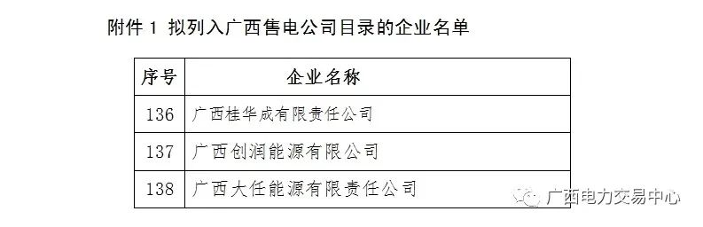 廣西公示擬列入售電公司目錄企業(yè)3家售電公司的注冊(cè)信息