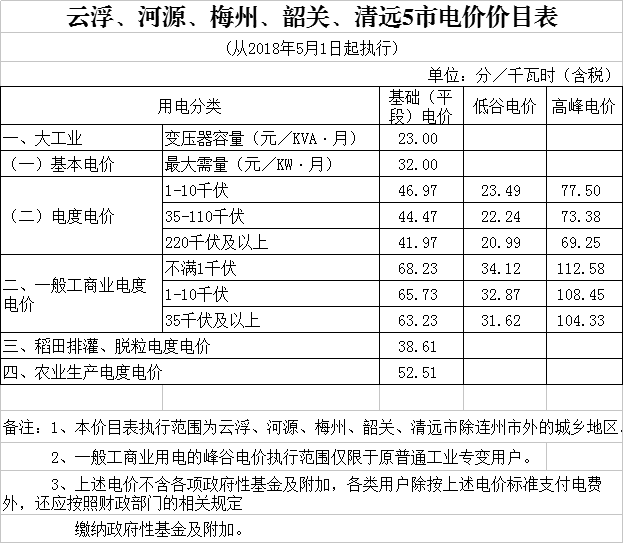一、全省除深圳市外一般工商業(yè)電度電價每千瓦時統(tǒng)一降低0.58分(含稅,下同);深圳市的一般工商業(yè)電價和大工業(yè)電價已合并為工商業(yè)及其他電價,其各類工商業(yè)及其他電價均每千瓦時統(tǒng)一降低0.12分。各地各用戶調(diào)價后的具體電價標準見附件。