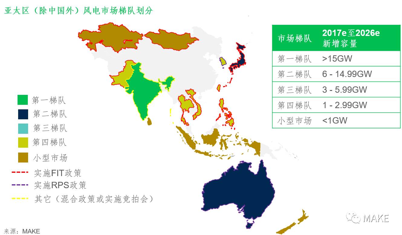 截至2016年底,亞太區(qū)(除中國外)累計(jì)風(fēng)電并網(wǎng)容量已達(dá)40.6GW,預(yù)計(jì)將于未來十年內(nèi)新增72GW,成為全球范圍內(nèi)最具發(fā)展規(guī)模之一的區(qū)域市場。印度市場仍將成為該區(qū)域市場的領(lǐng)軍人物,但其市場份額將從75%縮減至55%,日本、澳大利亞市場將實(shí)現(xiàn)強(qiáng)勢發(fā)展,遠(yuǎn)東地區(qū)(日韓及臺灣)的海上風(fēng)電產(chǎn)業(yè)也將進(jìn)一步加速發(fā)展。馬來西亞、老撾與緬甸風(fēng)電市場的發(fā)展盡管仍處于開發(fā)建設(shè)的初級階段,但也有望成為東南亞地區(qū)的增長點(diǎn)。尤其是在低風(fēng)速風(fēng)機(jī)技術(shù)有所提升的背景下,這些市場的項(xiàng)目開發(fā)可行性增加,加之風(fēng)電開發(fā)成本降低,政府部門也正尋求可行的方案將風(fēng)電技術(shù)作為可再生能源發(fā)電技術(shù)的主力技術(shù)之一。