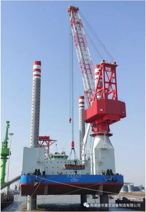 上海振華重工為“海洋風電69號”自升式風電安裝船配套的500T繞樁式起重機順利交付