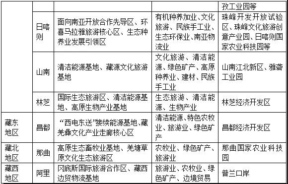 ——產(chǎn)業(yè)集聚度明顯提高,產(chǎn)業(yè)布局更加合理。各類產(chǎn)業(yè)園區(qū)、基地基礎(chǔ)設(shè)施建設(shè)日益完善,基本建成布局合理、功能齊全、經(jīng)濟(jì)繁榮的藏中南經(jīng)濟(jì)帶,藏東、藏北、藏西特色優(yōu)勢產(chǎn)業(yè)加快發(fā)展,高原特色農(nóng)產(chǎn)品基地、藏民族特色文化產(chǎn)業(yè)發(fā)展基地、開發(fā)開放實(shí)驗(yàn)區(qū)、經(jīng)濟(jì)合作區(qū)、綜合保稅區(qū)等產(chǎn)業(yè)集聚區(qū)等建設(shè)成效顯著。