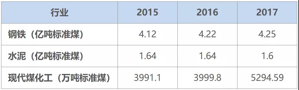 ▲2015-2017鋼鐵、水泥和現(xiàn)代煤化工的煤炭消費情況。數(shù)據(jù)來源:《“十三五”煤控中期評估與后期展望研究報告》(初稿)