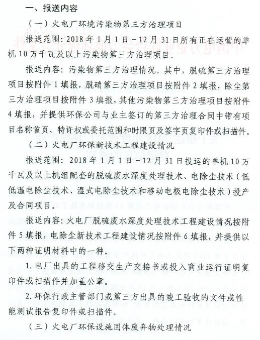 報送范圍:2018年1月1日-12月31日所有正在運營的單機10萬千瓦及以上污染物第三方治理項目。