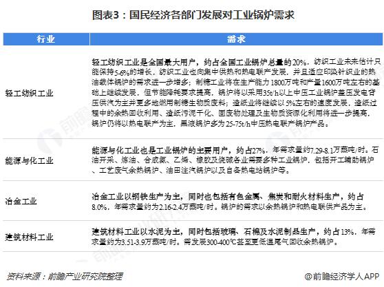 工業(yè)鍋爐在我國生產(chǎn)生活中占據(jù)重要地位。目前,在我國工業(yè)生產(chǎn)中,輕紡和化學(xué)工業(yè)是大量用熱的部門。而未來輕紡工業(yè)、能源工業(yè)、建材、建筑業(yè)、化學(xué)工業(yè)、冶金工業(yè)、交通運(yùn)輸業(yè)和軍工部門等仍將是工業(yè)鍋爐的主要市場。