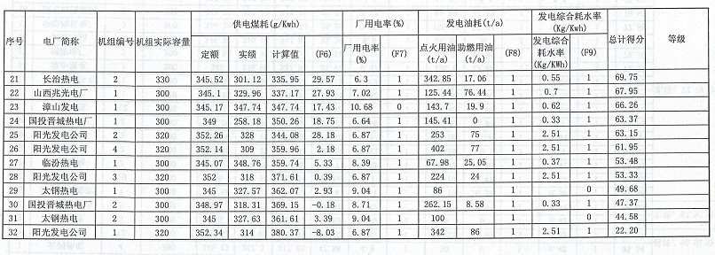 山西省發(fā)布2016年度火電企業(yè)能效水平的通報