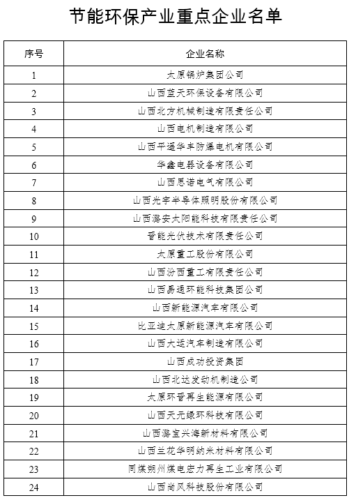 在節(jié)能環(huán)保裝備制造方面,重點推進太原重工新能源裝備有限公司風力發(fā)電機組關鍵零部件智能工廠建設項目、原鍋爐集團有限公司循環(huán)流化床鍋爐超低排放技術改造、山西平遙華豐防爆電機有限公司YB3節(jié)能高效電機二期項目、山西思諾電氣有限公司節(jié)能環(huán)保高新技術產(chǎn)品S14-M˙RL系列變壓器技術改造等項目;在節(jié)能技術推廣方面,重點推進山西易通環(huán)能科技集團有限公司100萬平方米/年節(jié)能蓄熱電采暖技術推廣應用建設等項目;在環(huán)保產(chǎn)業(yè)方面,重點推進山西福萬達工業(yè)新材料有限公司霧霾凈化路燈、山西普麗環(huán)境工程股份有限公司脫硝催化劑、脫硝催化劑再生綜合利用等項目;在資源綜合利用方面,重點推進山西平朔煤矸石發(fā)電有限責任公司基于CFB固硫灰升級利用的年產(chǎn)100萬噸陶粒制備工藝等項目;在節(jié)能環(huán)保服務方面,重點推進同煤電力環(huán)??萍加邢薰灸曩Y源化利用6000m3廢棄SCR脫硝催化劑、山西國科節(jié)能有限公司晉能長治熱電有限公司供熱系統(tǒng)增容改造等項目。(3月底前啟動項目申報工作,按照委內(nèi)要求在年內(nèi)完成相關工作。)