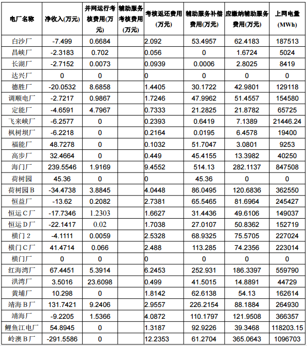 2018年2月份廣東統(tǒng)調(diào)電廠“兩個細則”考核補償結果