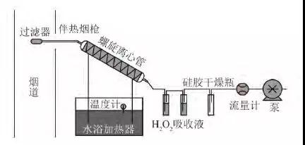 但在實(shí)際操作中,煙氣中的少部分二氧化硫會(huì)溶解于吸收液中,在被氧化成為三氧化硫后對(duì)測試結(jié)果產(chǎn)生影響。消除這一誤差的主要方式是對(duì)采樣過后的吸收液通過氮?dú)獾榷栊詺怏w吹掃去除其中的二氧化硫??刂评淠▌t是依靠可控溫度下離心力的作用來實(shí)現(xiàn)三氧化硫的分離捕集。煙氣在過濾顆粒物后進(jìn)入螺旋離心管,煙氣在作旋轉(zhuǎn)運(yùn)動(dòng)的過程中,由于離心力作用,三氧化硫被捕集在螺旋離心管的管壁上,同時(shí)該離心管通過水浴加熱,控制溫度在65~80°C ,保證低于酸露點(diǎn)而高于水蒸氣和其他酸性氣體的露點(diǎn)。采樣結(jié)束后,使用高純水清洗螺旋離心管,通過測定高純水中的硫酸根離子濃度計(jì)算煙氣中三氧化硫的濃度。控制冷凝法是當(dāng)前燃煤電廠煙氣三氧化硫的主要測試方法。研究普遍認(rèn)為,煙氣中的三氧化硫主要來自于2部分:鍋爐爐膜內(nèi) 0. 5% ~2%的二氧化硫轉(zhuǎn)化生成三氧化硫,選擇性催化還原裝置(SCR)催化0. 3% ~2%的二氧化硫生成三氧化硫。