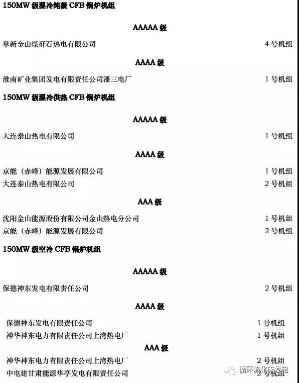 2017 年度電力行業(yè)循環(huán)流化床發(fā)電機組能效對標優(yōu)勝機組名單