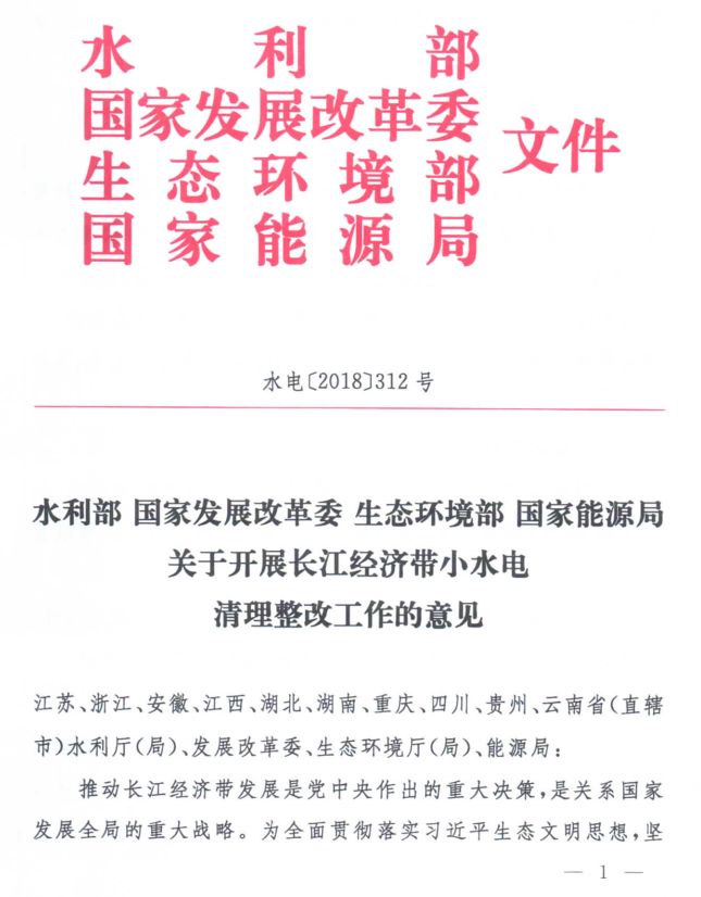 四部委:關(guān)于開展長江經(jīng)濟帶小水電清理整改工作的意見