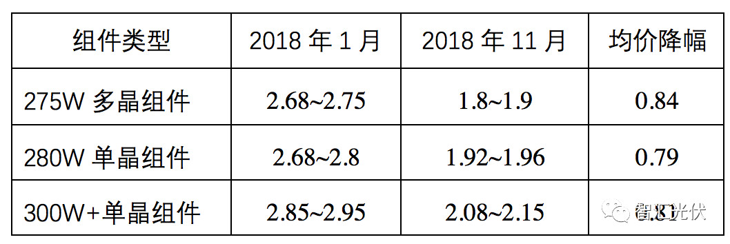 根據(jù)之前PVInfoLink公布的數(shù)據(jù),2018年1月至今,不同類型的光伏組件均價下降了0.8元/W左右,降幅為28%~31%。