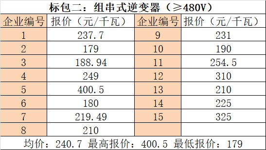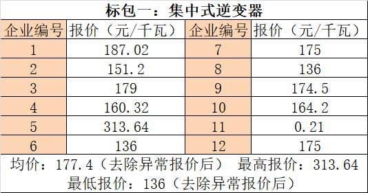 以下為本次招標(biāo)中逆變器企業(yè)報價信息(數(shù)據(jù)來源于光伏們):