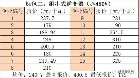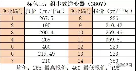 據(jù)了解,有35家光伏組件、逆變器供應商參與招標。組件方面報出了1.5535元/瓦的最低價,集中式逆變器報出了136.00元/KW的最低價。