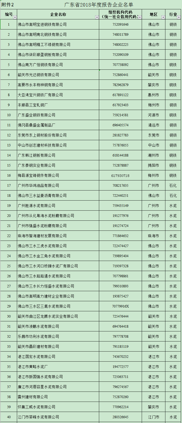 廣東省關(guān)于做好2018年度企業(yè)碳排放信息報告核查和配額清繳履約相關(guān)工作的通知