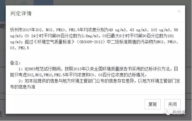 6、篩選結(jié)果顯示在數(shù)據(jù)篩選結(jié)果表中,判定結(jié)果已經(jīng)顯示項(xiàng)目區(qū)域是否達(dá)標(biāo),點(diǎn)擊不達(dá)標(biāo)區(qū)右側(cè)的方塊符號(hào),即可看到具體判定詳情,即當(dāng)?shù)啬甓葷舛葦?shù)據(jù),可用于環(huán)評(píng)報(bào)告中環(huán)境質(zhì)量現(xiàn)狀判定。