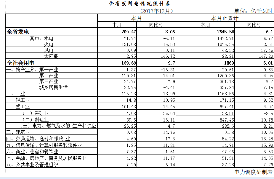 (四)落實(shí)綠色電力調(diào)度,發(fā)電行業(yè)節(jié)能減排成效顯著。2017年,全省電力行業(yè)嚴(yán)格貫徹綠色發(fā)展理念,通過全面放開新能源發(fā)電計(jì)劃、優(yōu)先安排水電、對(duì)火電機(jī)組實(shí)行差別電量計(jì)劃等措施,確保了增發(fā)的100億千瓦時(shí)水電上網(wǎng)消納,全額收購(gòu)風(fēng)電、太陽能電量70億千瓦時(shí),組織轉(zhuǎn)讓電量11.48億千瓦時(shí),關(guān)停小火電機(jī)組27.6萬千瓦。綜合測(cè)算,通過采取以上各種措施,2017年我省減少電煤消耗850萬噸,減排二氧化硫1.2萬噸。