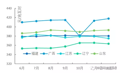 遼寧、山東、江蘇、福建、廣西5個(gè)重點(diǎn)地區(qū)12月電力月度集中競(jìng)價(jià)交易的加權(quán)平均電價(jià)為435.26元/兆瓦時(shí)。