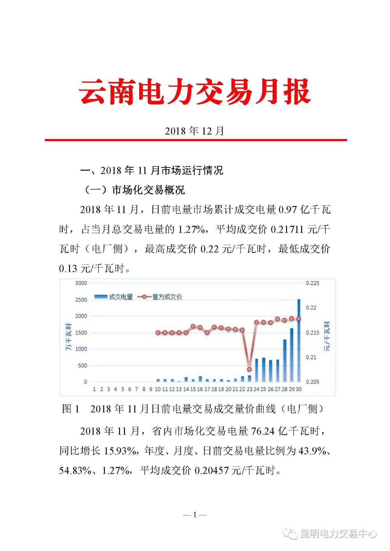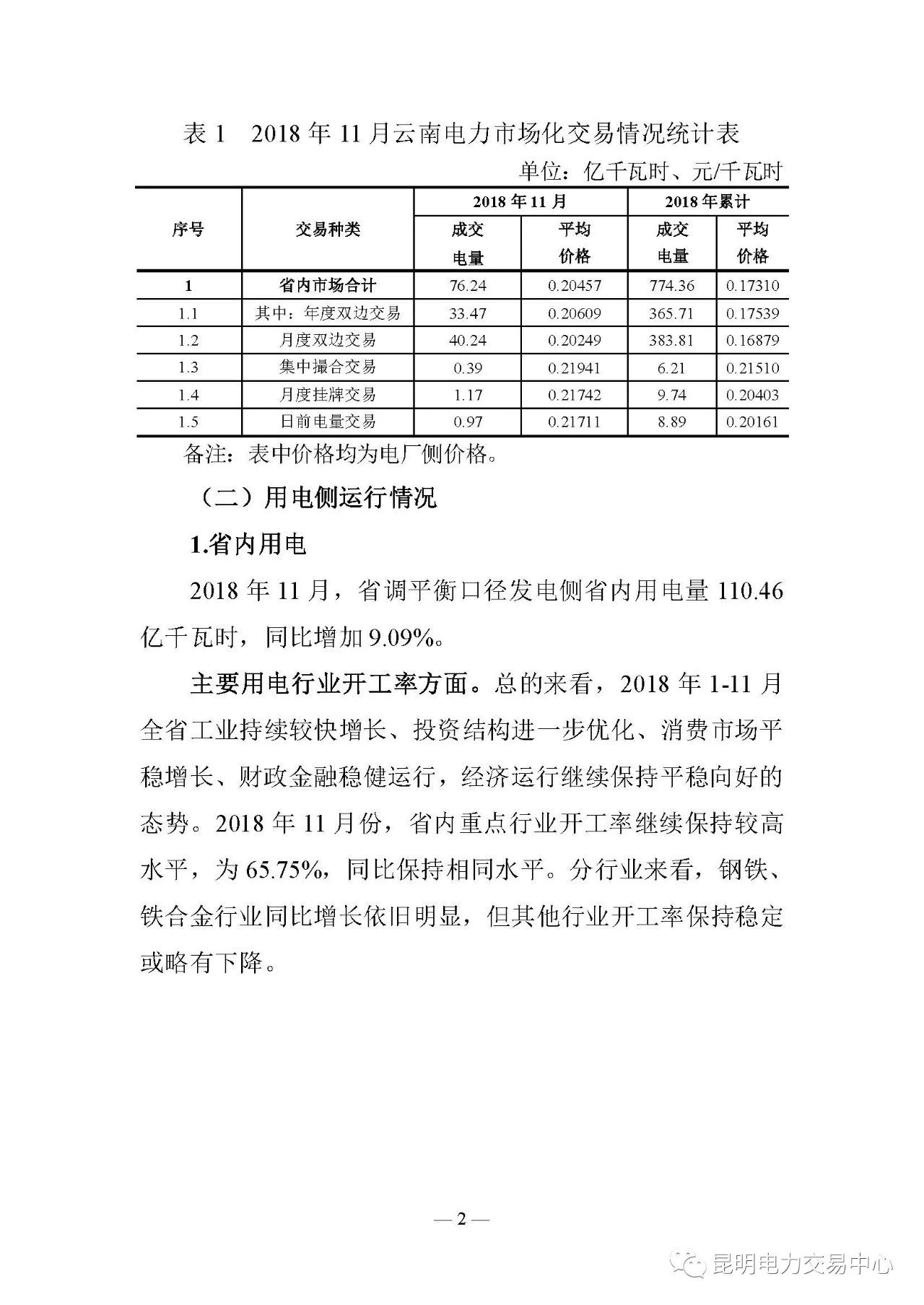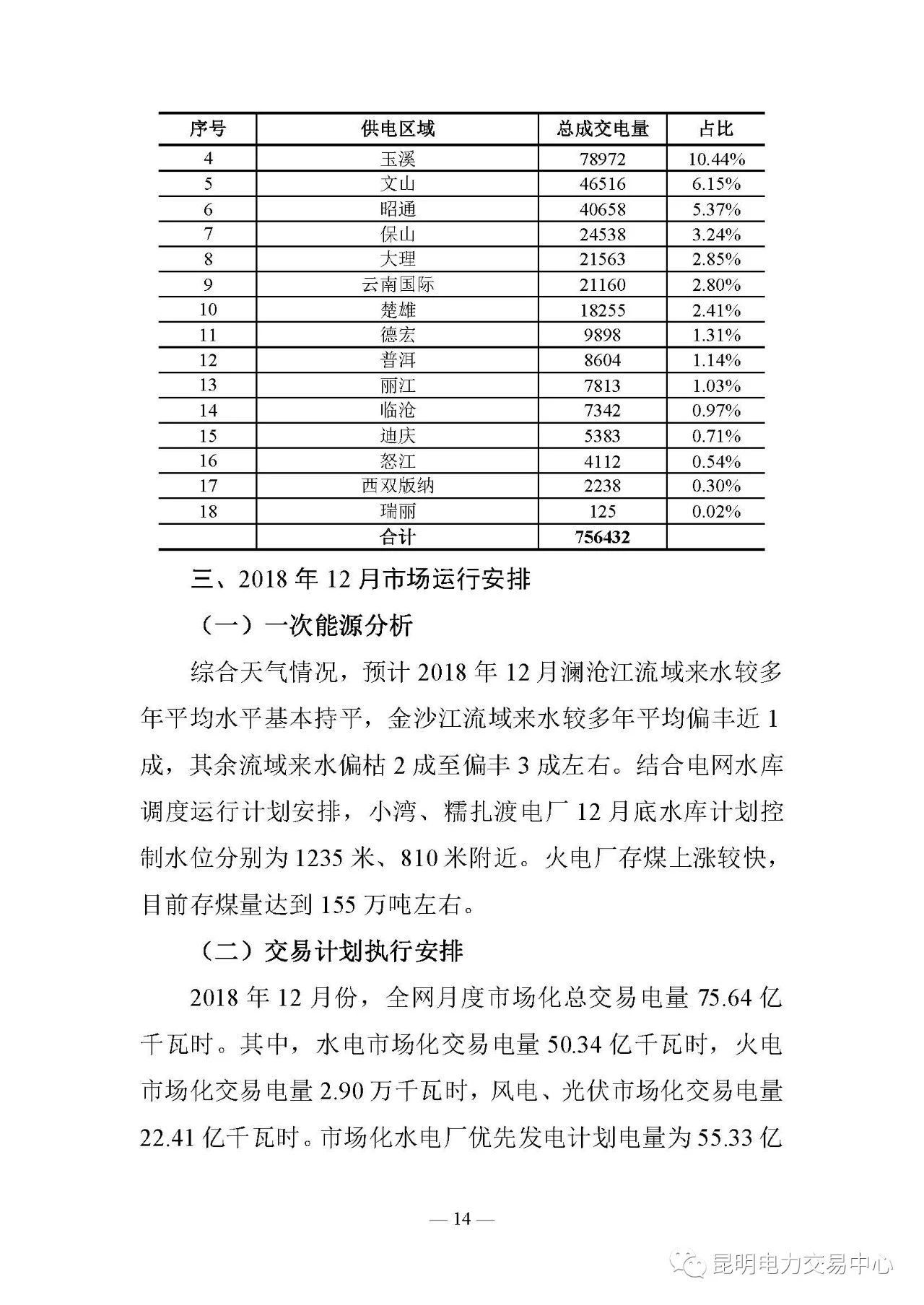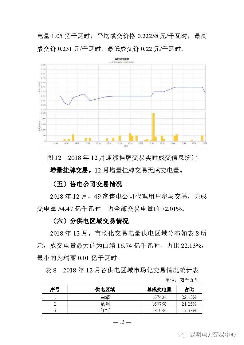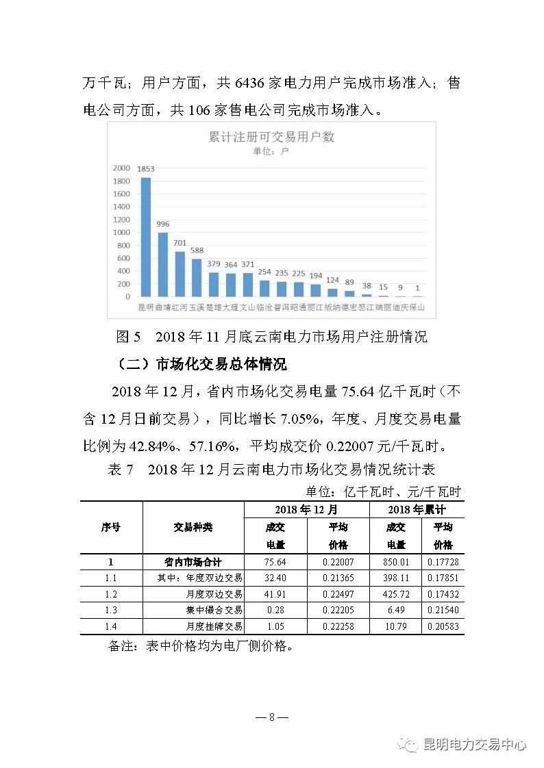云南電力交易月報(bào)(2018年12月):省內(nèi)市場(chǎng)化交易電量75.64億度
