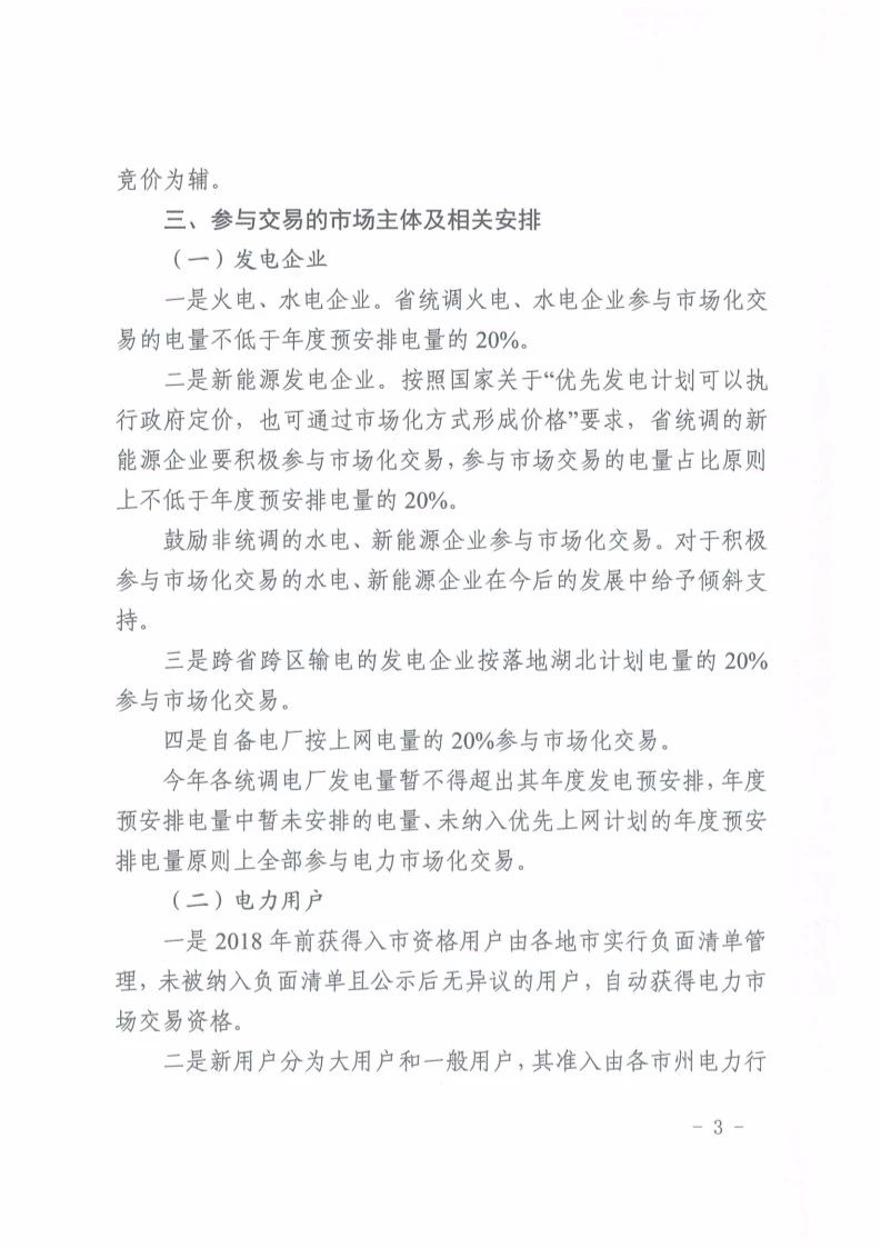 發(fā)電企業(yè):水電企業(yè)將參與市場競爭。省統(tǒng)調(diào)火電、水電企業(yè)參與市場化交易的電量不低于年度預(yù)安排電量的20%