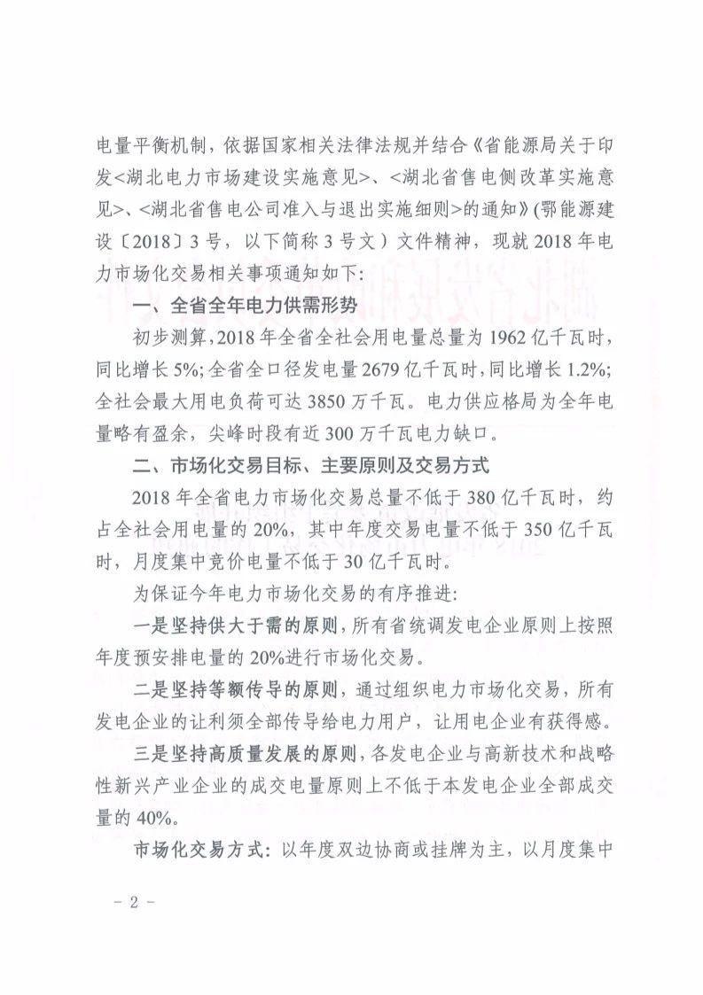 5月11日,湖北省印發(fā)《湖北省發(fā)展改革委關(guān)于組織開展 2018年電力市場化交易工作的通知》,明確2018年湖北電力市場交易安排。