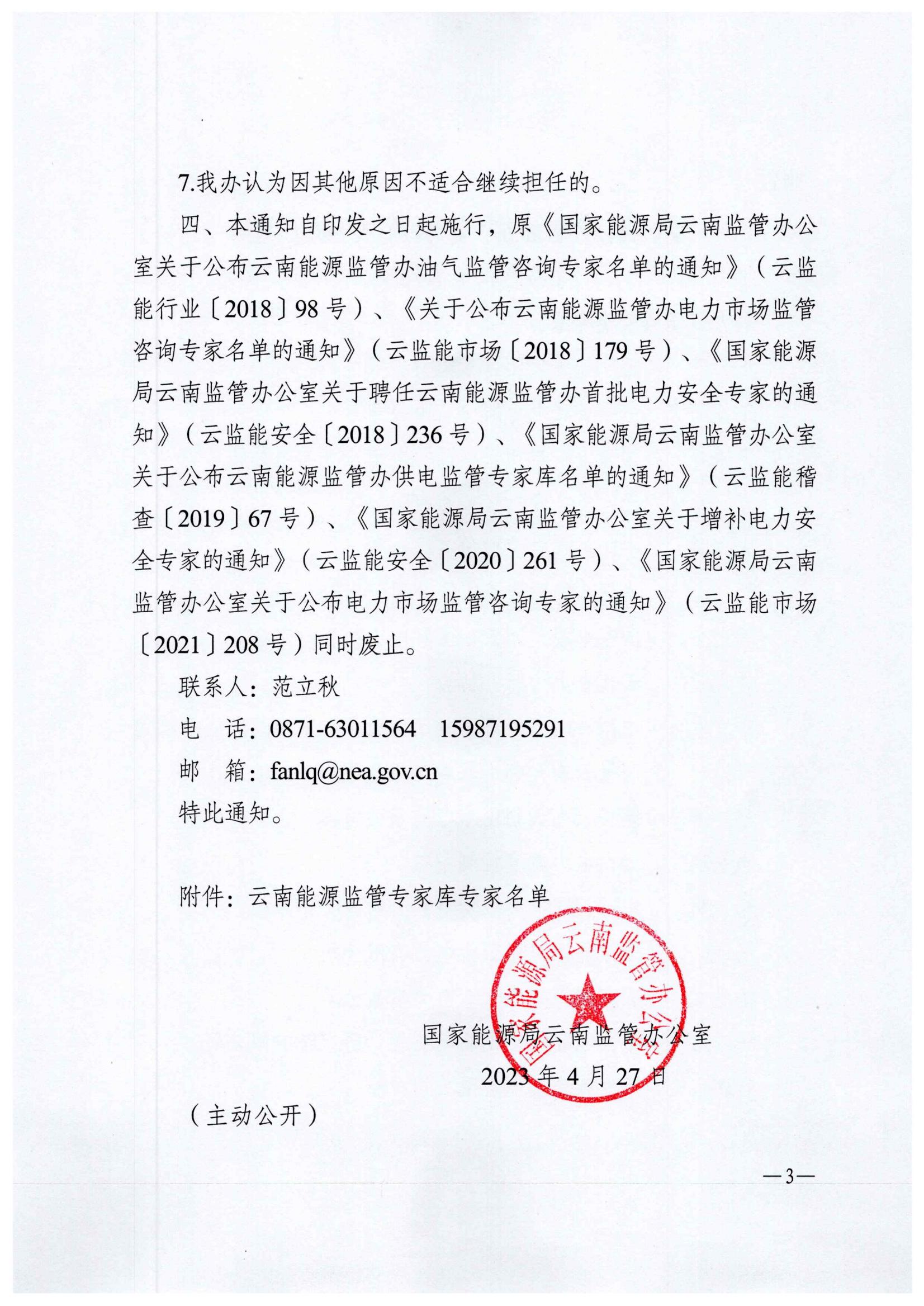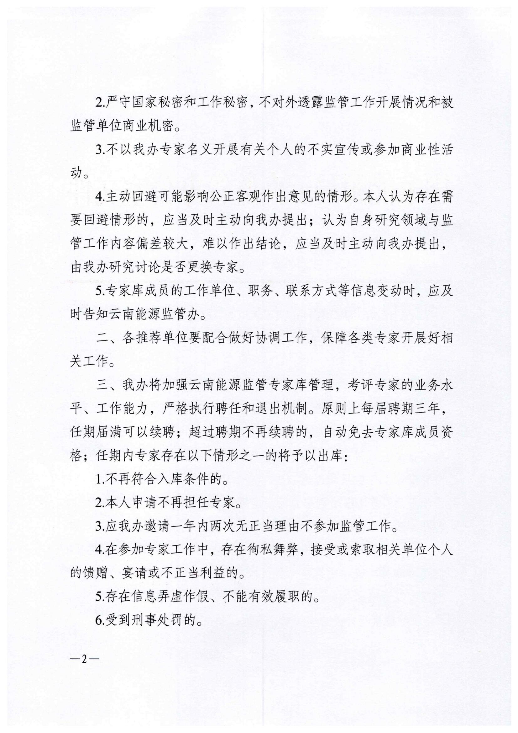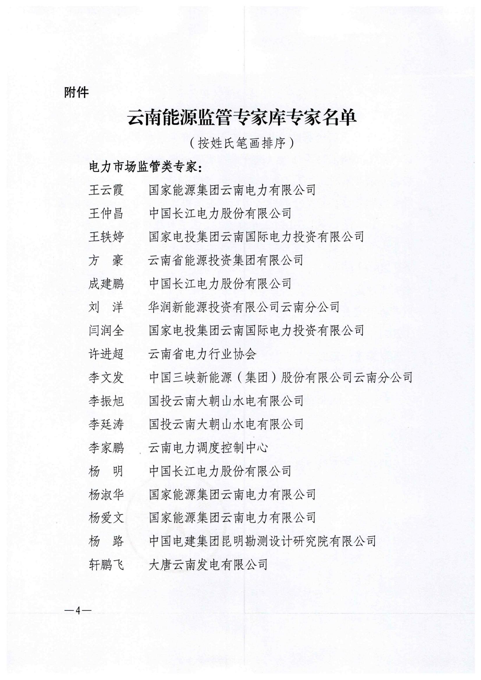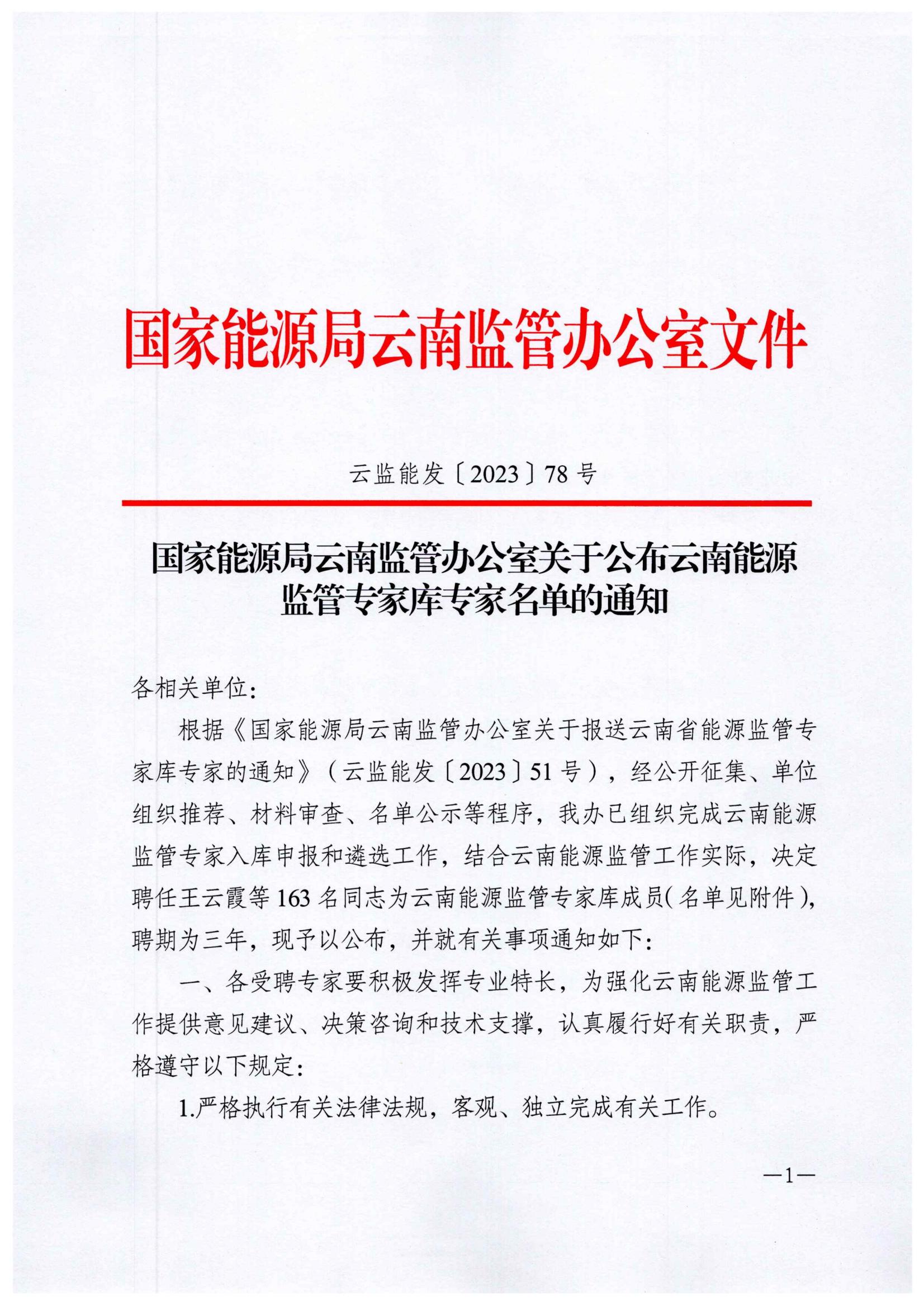 國家能源局云南監(jiān)管辦公室發(fā)布關于公布云南能源監(jiān)管專家?guī)鞂<颐麊蔚耐ㄖ瑳Q定聘任王云霞等163名同志為云南能源監(jiān)管專家?guī)斐蓡T(名單見附件