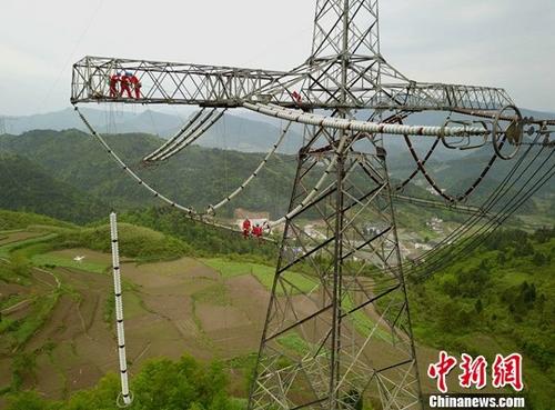 資料圖:電力工人正在進(jìn)行維修作業(yè)。中新社記者 周毅 攝