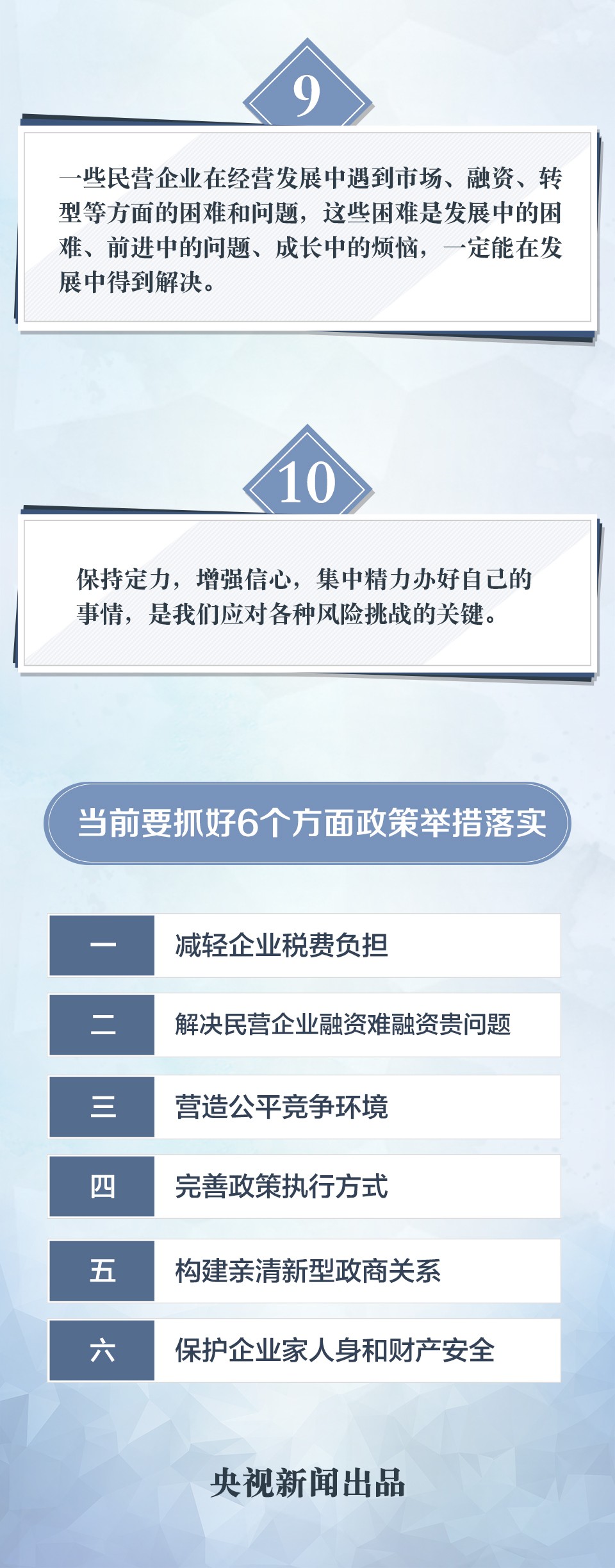 總書記今天給民營企業(yè)家們召開會議,了解實際困難、交流溝通,給我們樹立了信心??倳浻胸S富的基層工作經(jīng)歷,非常了解基層的情況,包括企業(yè)的經(jīng)營困難、貸款難的處境、去杠桿的問題等等,總書記說,政策執(zhí)行出了很多偏差,這指出了問題的關(guān)鍵??倳浗裉焯貏e提到了銀行惜貸、抽貸的問題,指出要出臺一整套考核機(jī)制,考核銀行到底給民營企業(yè)多大的支持。今天總書記的講話,涉及到很多具體問題,并且談到很多具體的措施和辦法來解決問題,而不是泛泛而談一些概念,講話內(nèi)容很實在。