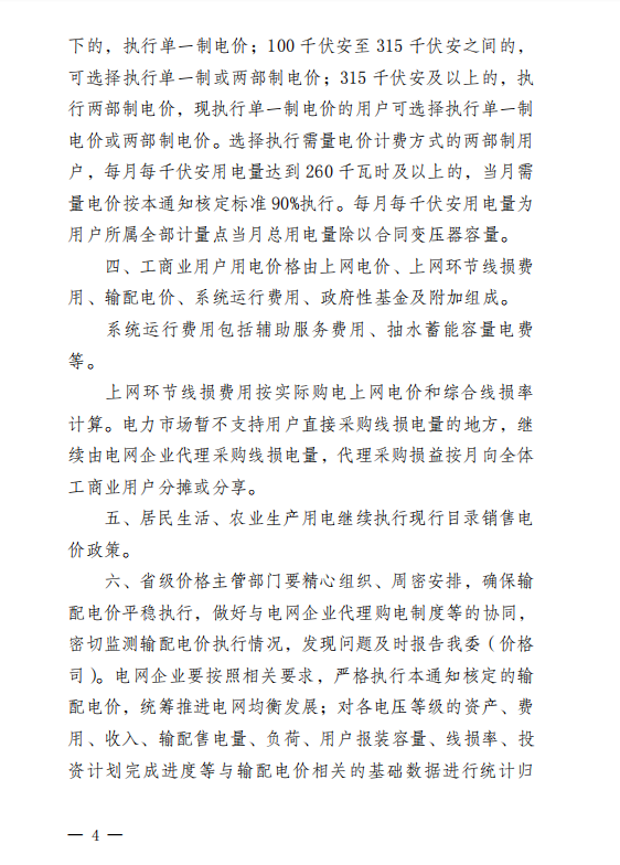 二、工商業(yè)用戶(含參與市場化交易用戶、代理購電用戶)用電價格由上網電價、上網環(huán)節(jié)線損費用、輸配電價、系統(tǒng)運行費用、政府性基金及附加組成。